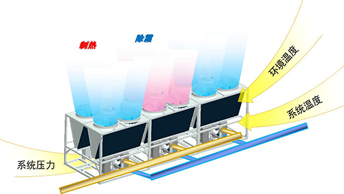 除霜時制熱不停機(jī):YCAE-G模塊組合時,集控器會自動均衡分配各模塊的除霜時間,避免組合模塊同時進(jìn)入除霜運(yùn)轉(zhuǎn);無需除霜的模塊可以保證系統(tǒng)繼續(xù)運(yùn)行,保證制熱不停機(jī)。